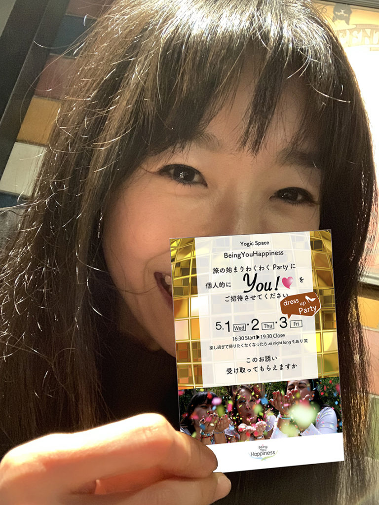 What’s New 4/2 B.Y.Hわくわくパーティのお誘い!読んでねプライベートよぎっくスペース★BeingYouHappiness★5月からワクワクな展開していきます!ヨガに限らず、コンシャスネスな拡がり なんでも展開していく 魅惑のスペースです✴︎✔︎Video Up Talkビデオアップトークや、✔︎Zoomでの “もっと探求クラス” 配信や、✔︎Kidsなヨガ&コンシャスネスや、✔︎プライベート感Deepなヨガクラスや、✔︎コンシャスネスなHappinessMeditationクラスや、✔︎クンダリニーUPなチャクラアクティベーションや、✔︎アクセスBarsをラン&オンしてGet More Universe!!したり…✔︎アーユルヴェーダでBeauty磨いたり✔︎トーンアップFace&Bodyトリートメントしたり✔︎Kids Yoga Englishで遊んだり✔︎チャンティング歌ってLove&Peace開いたり♪✔︎DJパーティでアゲアゲしたり✔︎無限に~ etc….サイコ~気持ちよくて Magicalなこといろいろ展開していくBeingYouHappiness!!なスペースです✴︎そして!5月の 1,2,3日の16:30から19:30は、☆BeingYouHappiness☆旅のはじまりワクワクParty3days Party On!!!老若男女 ヨガじゃない人も だれでも このパーティに遊びに来て欲しいんです♪なにが起こるか どんなワクワク広がるか みんなとの瞬間クリエーションなので、正直わかりませんが 笑❤︎でも、こんな流れかなぁーって思ってます↓★5/1,2は ヨガヨガパーチー(ヨガマット持参歓迎) いっぱいになりました!✴︎ハタヨガでガツっと覚醒クリーニング✴︎Love&PeaceなチャンティングでアナハタチャクラUp!✴︎食べたり 飲んだり(お酒もok!)踊ったり~DJケンさんでミュージックもご機嫌です^^★5/3は ドレスアップパーチーまだまだ募集中です!そんなに構えないで いつもよりナイスなあなたでお越しください。Girlsはピンヒール大歓迎!Guysはジャージ、ジーンズ、スーツ、NAKED…なんでもok! (一番セクシーに見えるので来てくださーい)DJアゲアゲにあわせて、椅子取りor人生とりあっこゲーム?!とか、ユニバース小話しとか? チャント唄うのもイイね! アクセスバーズ大会もあるかも~パーティ参加は必ず予約が必要なので、info@behappiness.netまで お知らせくださいませ❤︎Invitationはこち